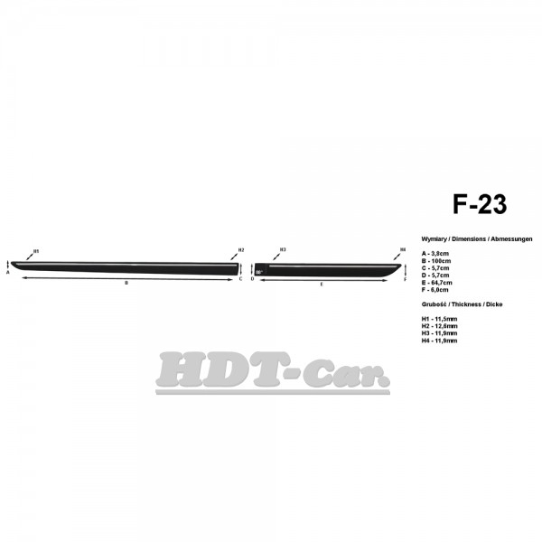 Boční ochranné lišty slouží k ochraně dveří před poškozením a také jako doplněk automobilu. Lišty jsou přesně délkou přizpůsobeny na typ vozu. Materiál je guma (odolná vůči mechanickému poškození). Montují se pomocí samolepící fólie. Lepit na velmi dobře odmaštěnou a suchou plochu.